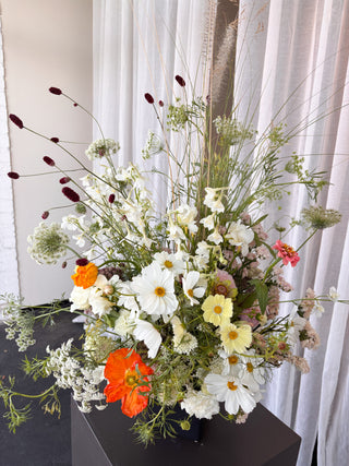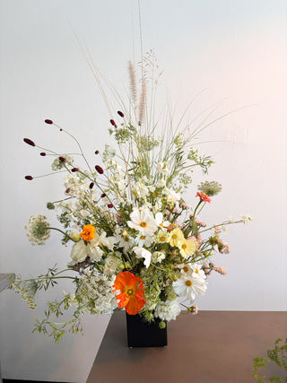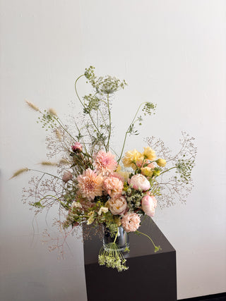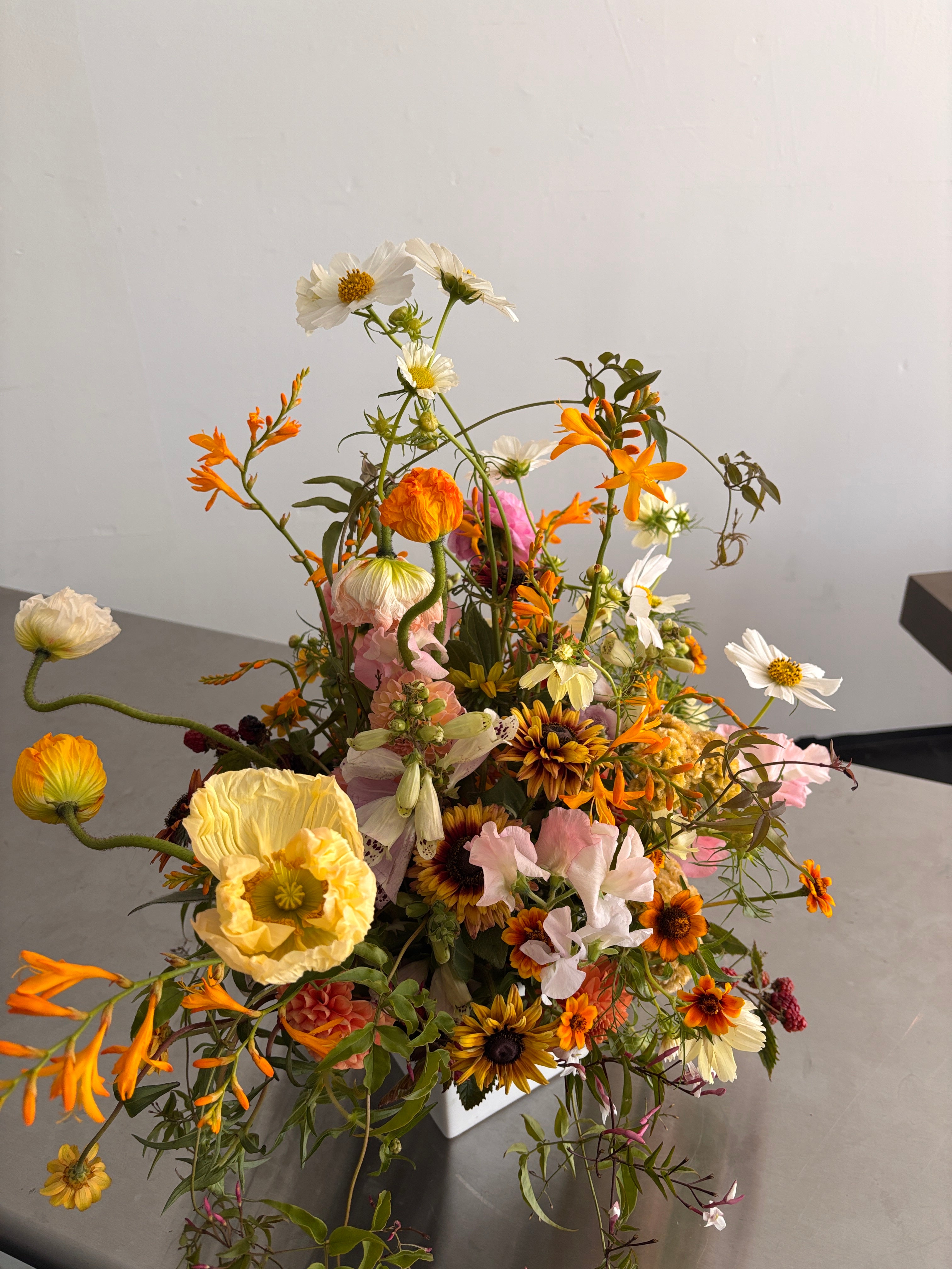 Designer’s Choice is a one-of-a-kind arrangement created with premium blooms and locally grown wildflowers. Every piece is thoughtfully designed using the freshest seasonal flowers available, so no two arrangements are ever the same. The photos shown are examples of our signature style and past creations—each new order is a unique expression of the moment.