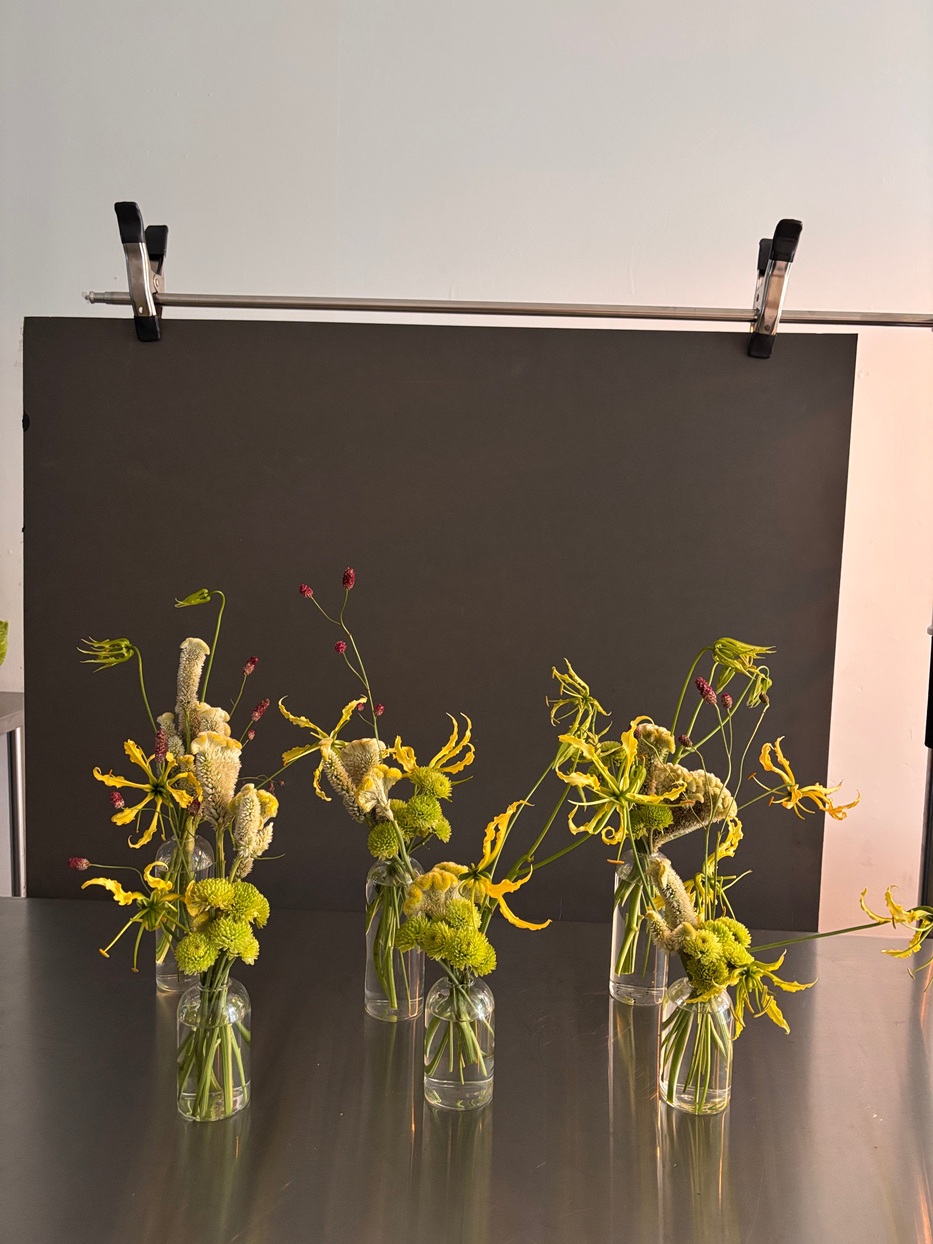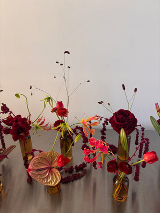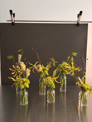 When you want something small yet impactful and artsy. A selection of the finest exotic flowers in clear glass bud vases.