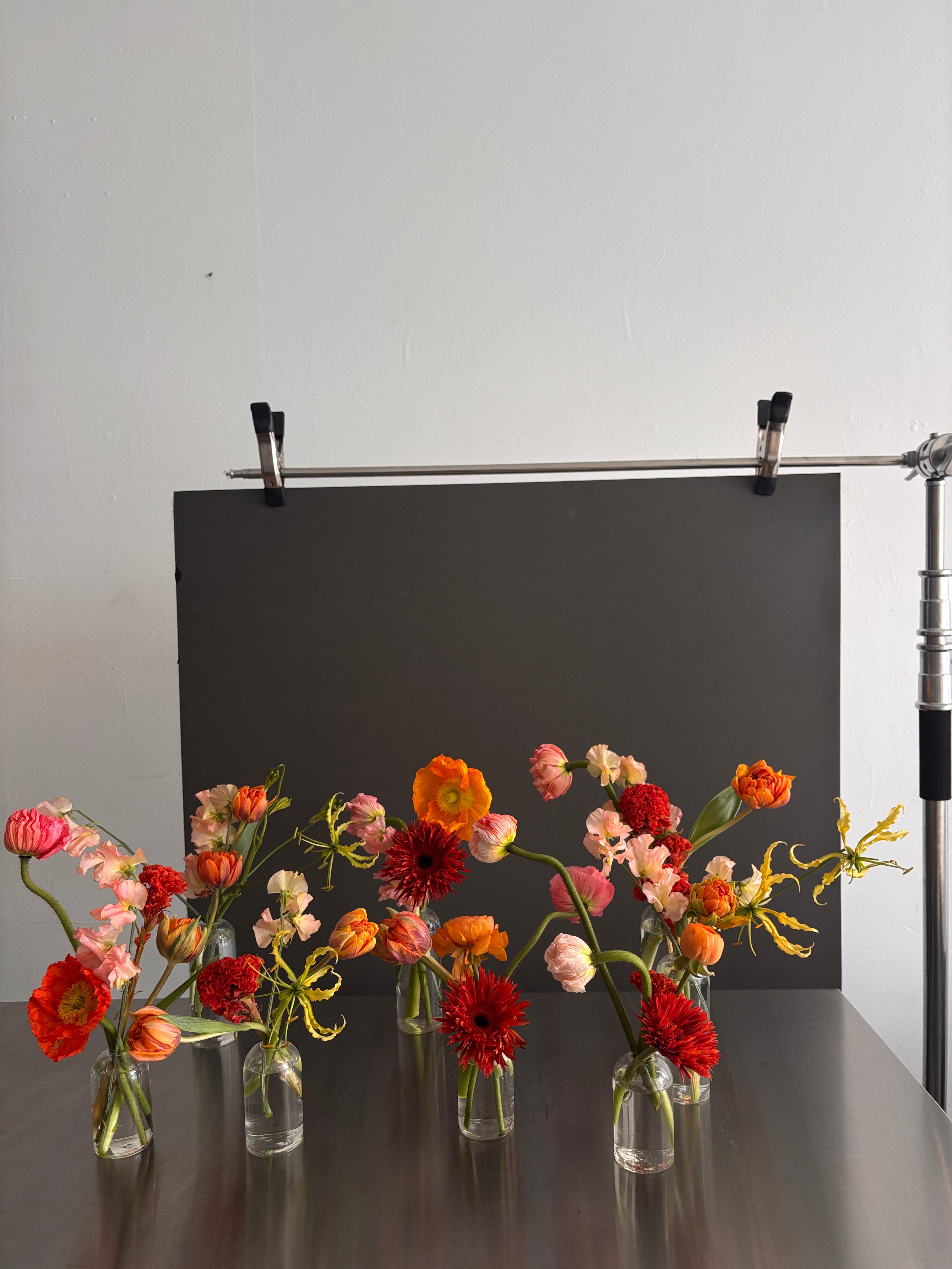 Each set will have a mix of premium seasonal flowers that creates movement and visual interest. This particular design has flowers in different shades of orange and yellow. If you’d like a different color palette, let us know in the notes.