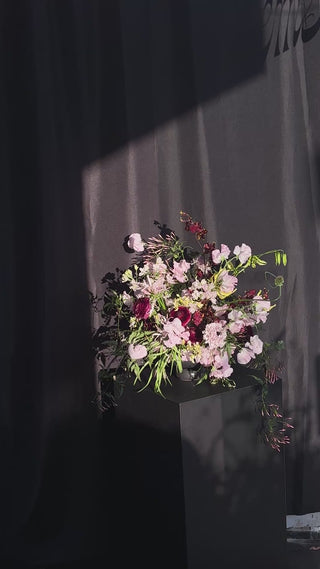 A study in contrast — blush and burgundy, soft textures and defined lines. Dreamy at first glance, yet grounded in depth and quiet intensity.
